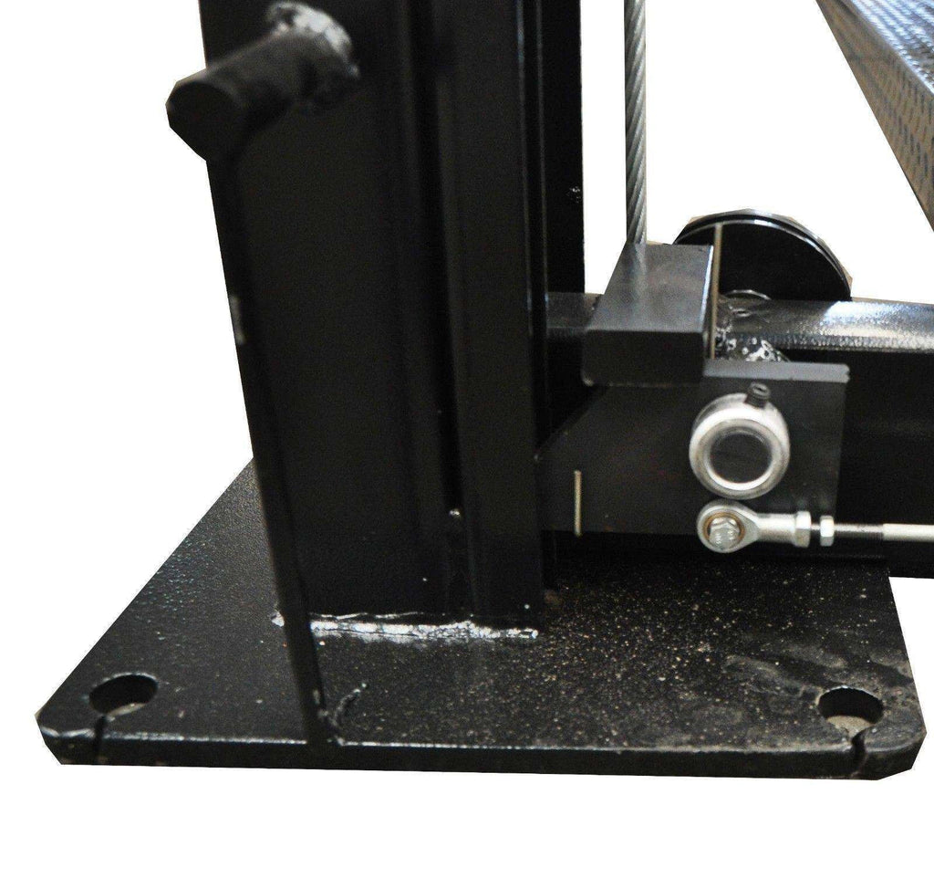 The Mayflower Blacksmith Four Post Lift Pro 8000 is a heavy-duty car lift designed for storage and service. It has a capacity of 8000 lbs and features a four post design that provides stability and strength for lifting vehicles. The lift can be used for storing vehicles and for performing maintenance and repair work on cars and trucks. The Pro 8000 has a clear floor design for easy access to the undercarriage and wheels, and its height can be adjusted to accommodate a wide range of vehicles. The lift is designed for easy and safe operation, with a locking mechanism to keep vehicles secure while lifted and an automatic safety lock system to prevent accidental lowering of the lift.