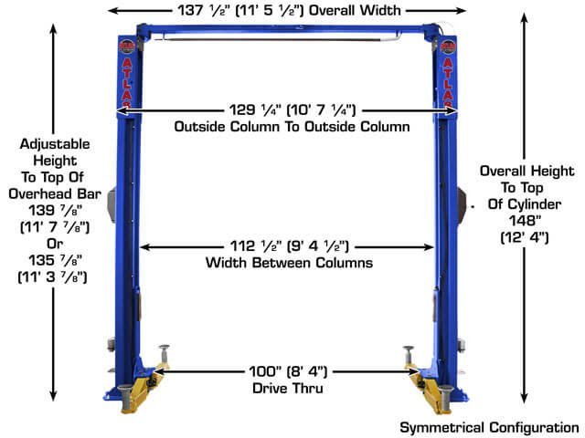 The Atlas® Platinum PVL10 is a 2-post 10,000 lb. capacity ALI Certified commercial grade lift designed with the professional shop in mind. The Platinum PVL10 was engineered and built to offer a commercial grade above ground lift to those customers who have "fallen in love" with the reliability offered by the Double S column design and symmetric columns. Tens of thousands of above ground lifts incorporating the Double S column design have been sold worldwide over the past two decades. The Double S column design was so revolutionary, that it was protected by a patent. That patent has now expired.